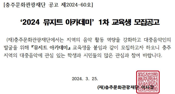 2024 뮤지트 아카데미 1차 교육생 모집공고 (나만의 노래 만들기 모집마감)